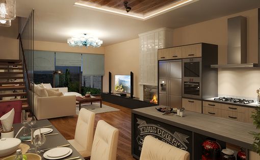 Частный коттедж – это необъятный мир для его хозяев, в котором находит отражение их взгляды на уют, красоту и практичность. Проект интерьера коттеджа воплощает в себе как дизайнерские идеи владельцев коттеджа, так и современные представления о красоте, гармонии и функциональности. В дизайне интерьера используются новые материалы и их сочетания, модная цветовая гамма и конечно не забыли о мебели и бытовой техники. Функционально оправданный прием совмещения кухни и гостиной в одного большое помещение актуален не только для квартир, но и частных коттеджей. Для владельцев этого домовладения одно из важных условий получить пространство, в котором объединены основные для семьи помещения: кухня-столовая, гостиная и частично к этому пространству добавлена зона прихожей. Спальни для родителей, гостей и детей выделены не только в отдельные помещения, но и размещены на другом этаже. Варианты устройства ванных комнат и санузлов предполагают размещение как при спальнях, для индивидуального пользования, так и с выходом в помещения общего пользования (коридор, лестничный холл). Идея встройки в одно из помещений готовой мобильной сауны пришлась по душе владельцам коттеджа.