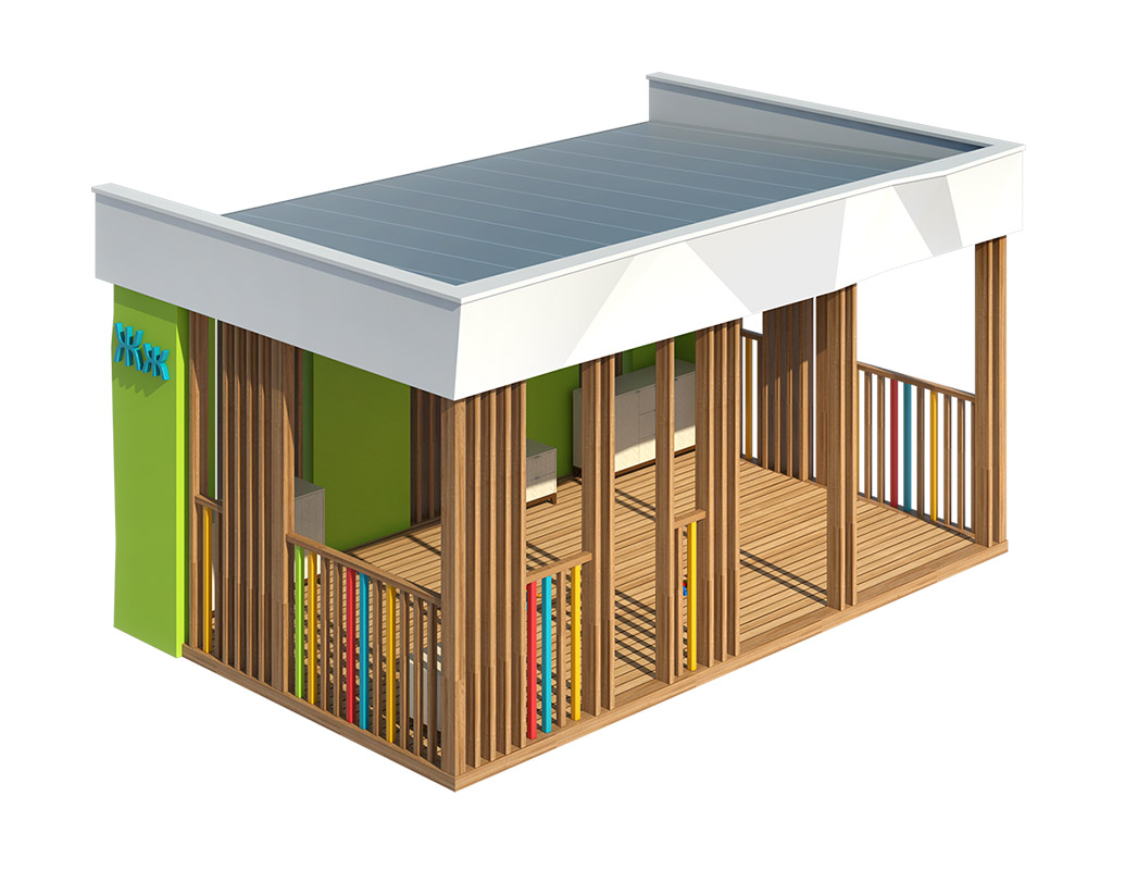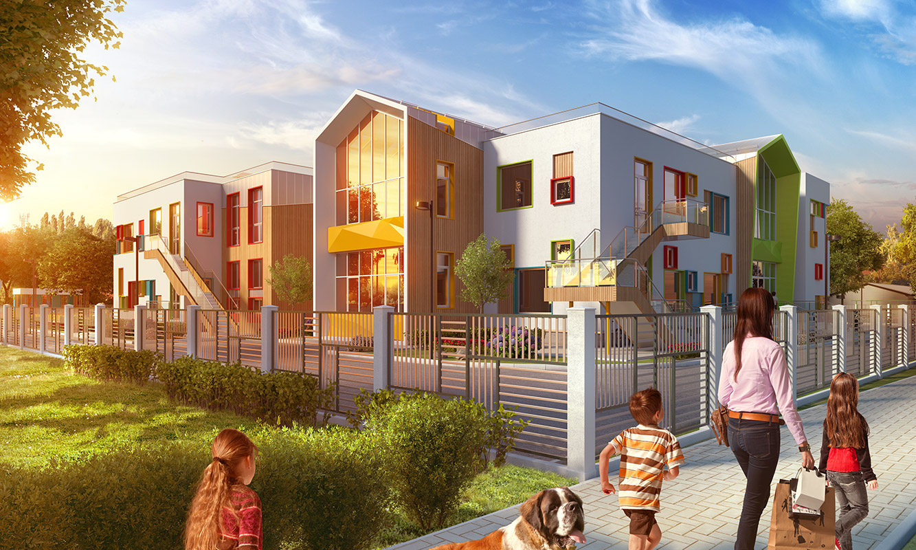 По заданию заказчика разработано здание детского садика на 135 мест. В двухэтажном здание дошкольного образовательного учреждения (ДОУ) предусмотрен подвал для размещения технических и вспомогательных помещений. Здание имеет комбинированную кровлю с перепадом высот от 7,2 до 9,4 метров. Ярко выраженные выступающие элементы фасада обеспечивают хорошее освещение для игровых и спальных помещений. Входные группы располагаются со всех сторон здания и обеспечены тамбурами. Медицинский блок состоит из: медицинского кабинета, изолятора, приемной, процедурной, санитарного узла. Предусмотрена кладовая для хранения колясок, велосипедов и санок. Групповые помещения включают в себя раздевальные с шкафами для верхней одежды, буфетные, туалетные комнаты, спальни и игровые. На первом этаже запроектированы четыре групповые по 15 детей каждая с отдельными выходами на улицу, кухня и медицинский блок. На втором этаже запроектированы помещения пяти групповых по 15 детей каждая, зал для спортивных и музыкальных занятий, административные комнаты и помещения для кружковых занятий. Прилегающая территория обустроена площадками для прогулок с устройством веранд.